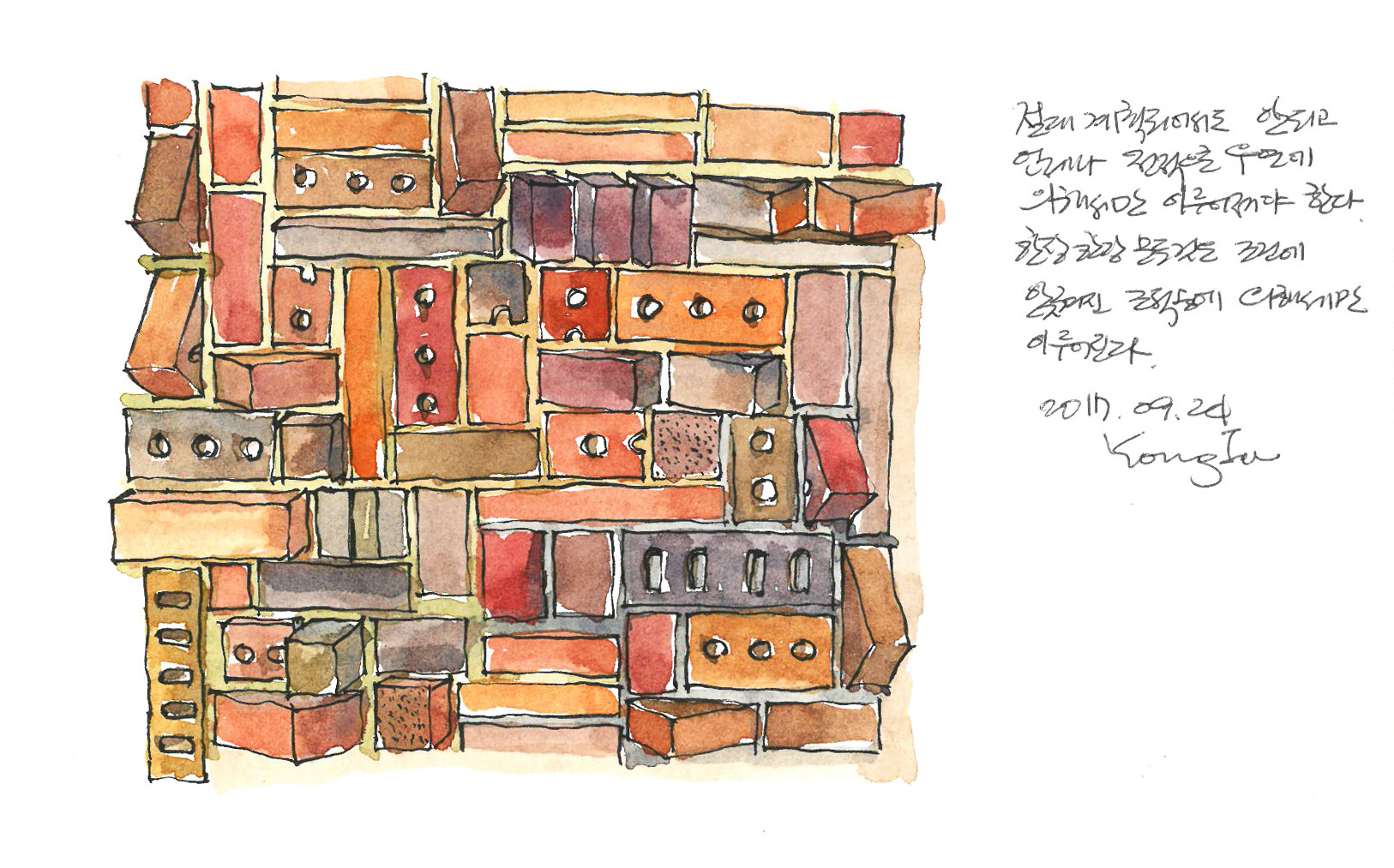 한장 한장 모든것은 조건에 앉혀진 조적공에 의해서만 이루어진다.