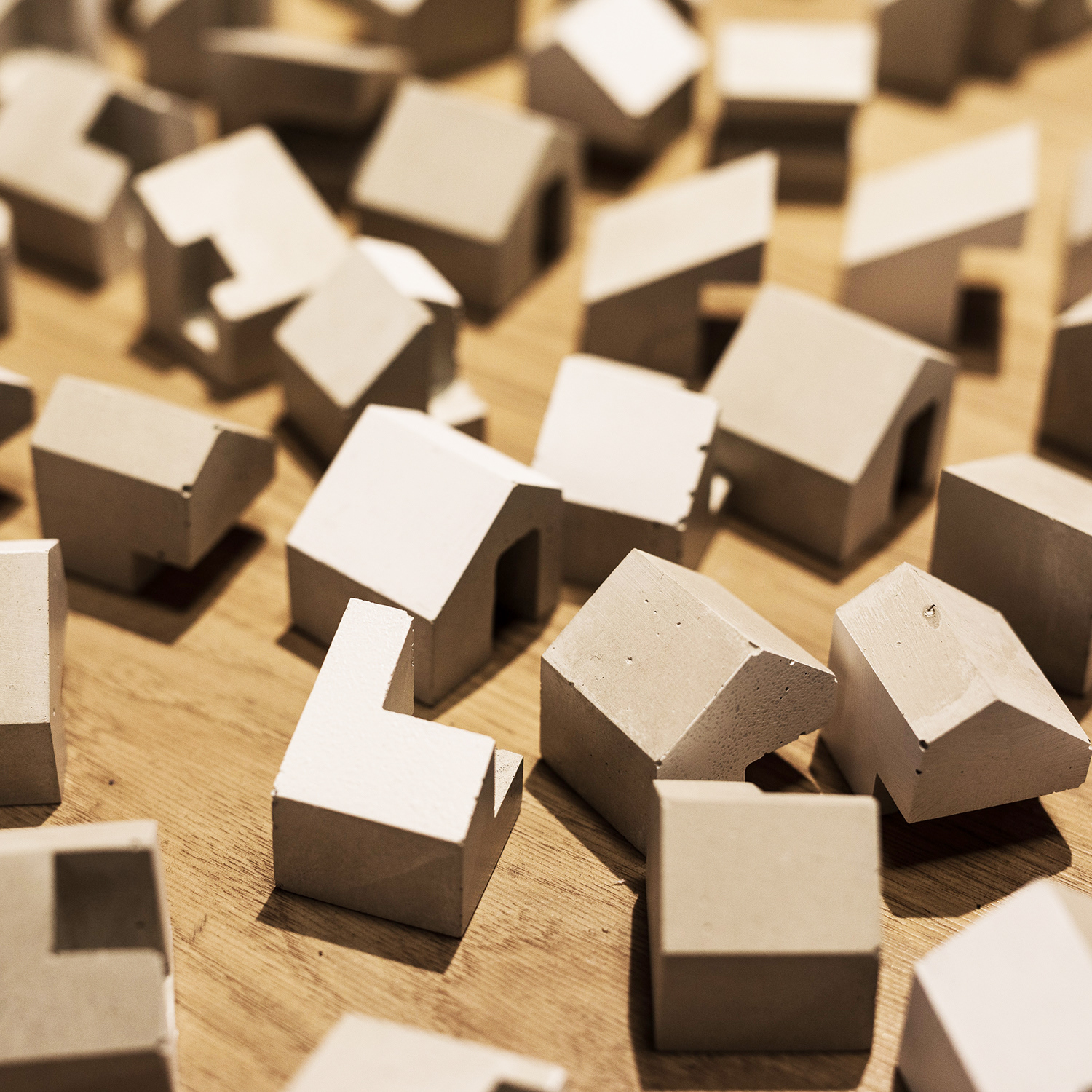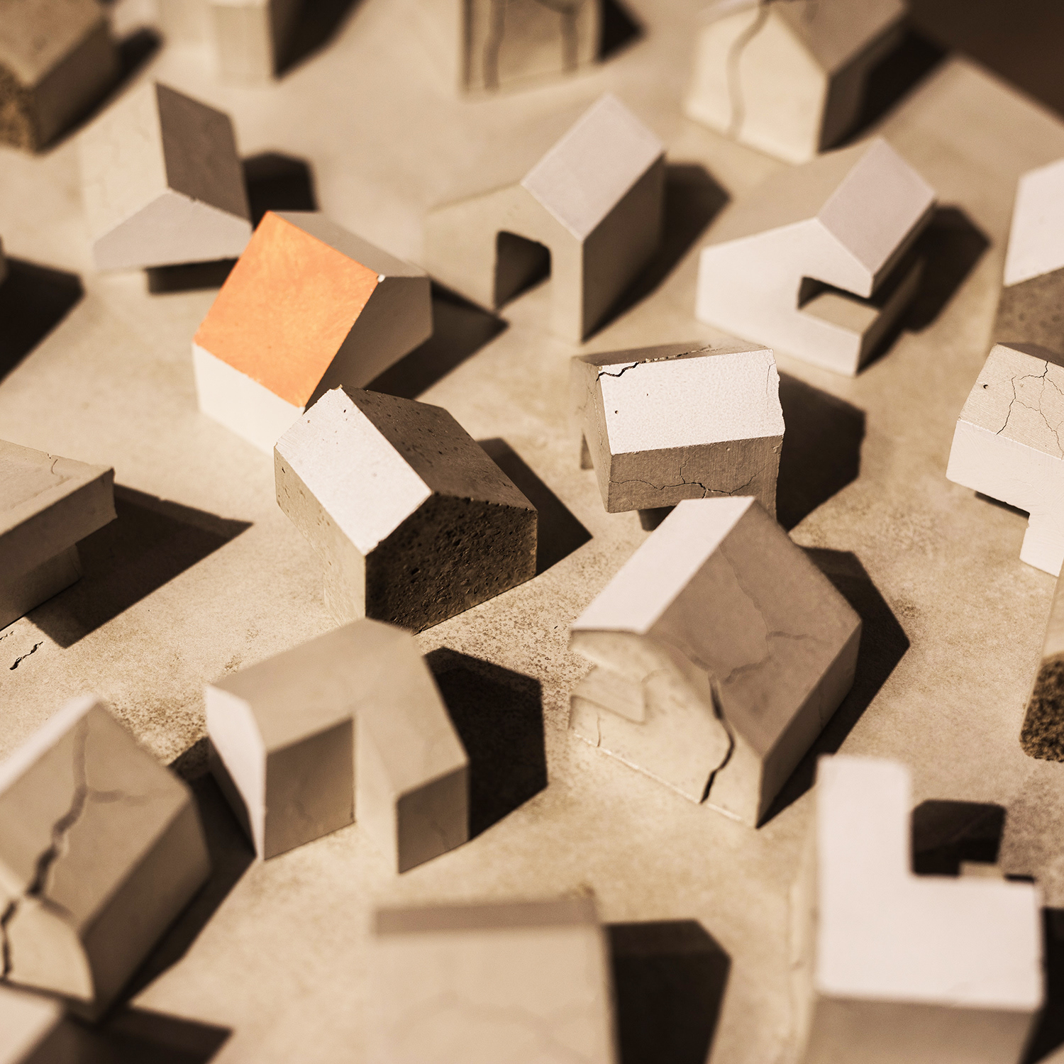 여든 한 채의 집 그리고 여든 하나의 이야기 | 81 houses & 81 stories | 콘크리트+석고, 83cm x 83cm, 2017
